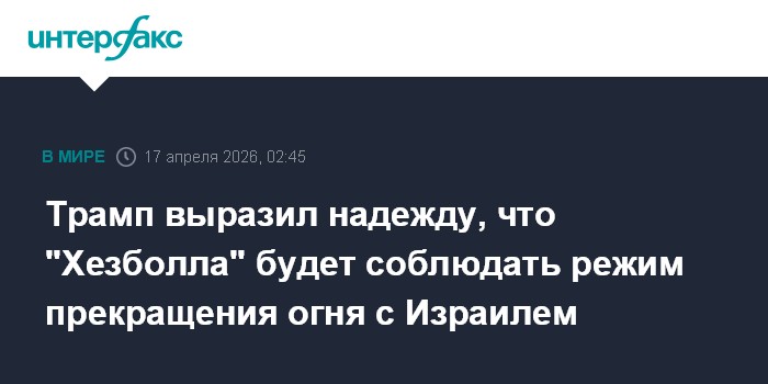 Москва. 17 апреля. INTERFAX.RU - Президент США Дональд Трамп надеется на соблюдение радикальным движением "Хезболла" вступившего в силу десятидневного режима прекращения огня между Израилем и Ливаном.