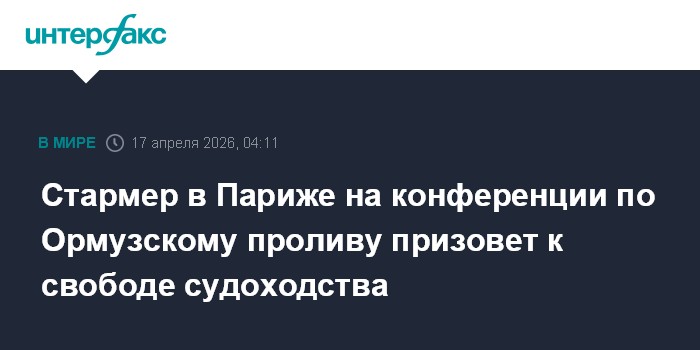 Москва. 17 апреля. INTERFAX.RU - Премьер-министр Великобритании Кир Стармер на конференции в Париже намерен призвать к действиям для защиты свободы судоходства в Ормузском проливе, информировала канцелярия премьера.