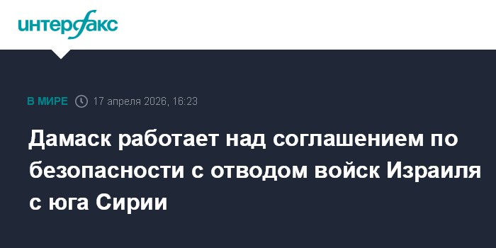 Москва. 17 апреля. INTERFAX.RU - Дамаск намерен добиться соглашения по безопасности с Израилем, которое будет предусматривать уход израильских военных из южных районов Сирии, заявил президент Сирии Ахмед аш-Шараа на Анталийском дипломатическом форуме в Турции.