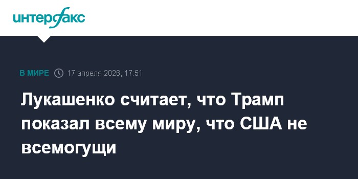 "Главный враг Америки - это Китай. И если американцы не смогли справиться с Ираном... Я это давно сказал: не лезьте в Китай. Там такая мощь, с которой справиться они никогда не смогут. Руководство Америки поняло, что они супердержава, но не суперсила. И этим они дали надежду, что американцы, поняв это, будут считаться не только с Китаем (но) и (с) Россией. Россия - огромная территория, там ничего не сделают они ракетами. Ракеты быстрее закончатся, чем территория России. Иран тоже это показал", - продолжил Лукашенко.