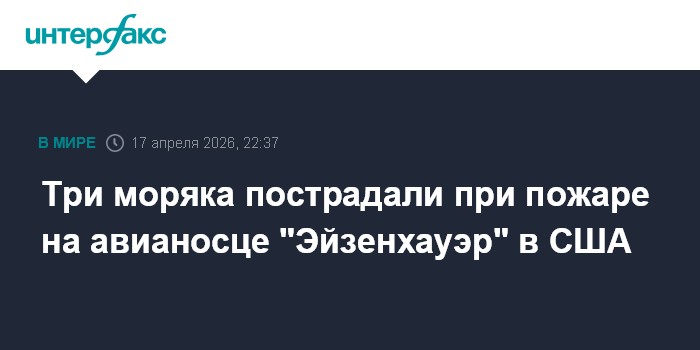 Москва. 17 апреля. INTERFAX.RU - На американском атомном авианосце USS Dwight D. Eisenhower, находящемся на судоверфи в Портсмуте в штате Вирджиния, произошел пожар, сообщила информационная служба Военно-морского института Соединенных Штатов со ссылкой на представителя ВМС США.