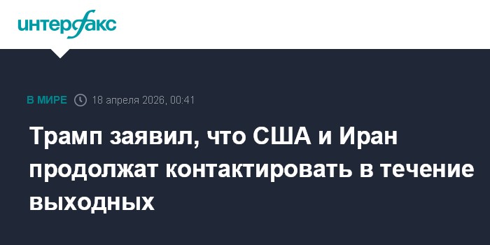 Москва. 18 апреля. INTERFAX.RU - Переговорщики из США и Ирана продолжат контакты во время выходных, заявил американский президент Дональд Трамп.