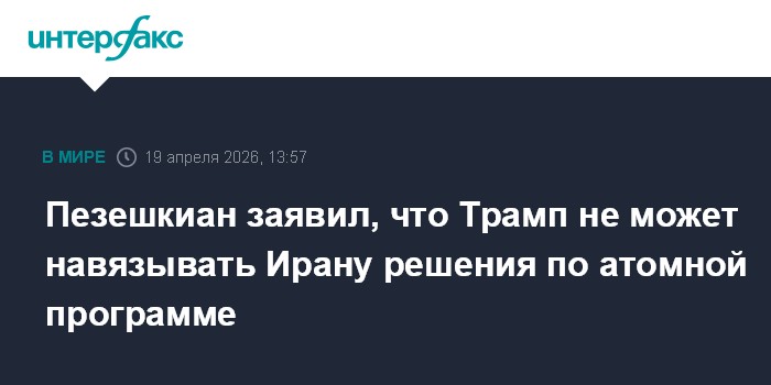 Пезешкиан заявил, что Трамп не может навязывать Ирану решения по атомной программе