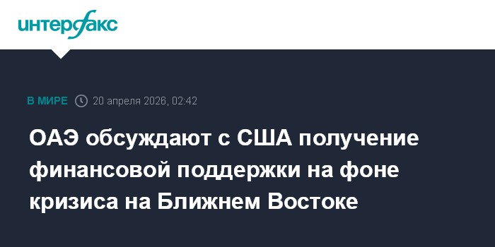 Москва. 20 апреля. INTERFAX.RU - Объединенные Арабские Эмираты начали обсуждение с США возможности получения американской финансовой поддержки на случай, если конфликт вокруг Ирана ввергнет ОАЭ в еще более глубокий кризис, пишет The Wall Street Journal.