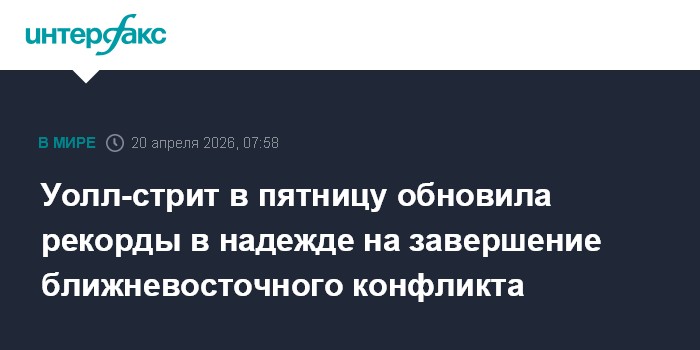 Москва. 20 апреля. INTERFAX.RU - Американские фондовые индексы продемонстрировали существенный рост в пятницу, при этом S&P 500 и Nasdaq Composite закрылись на исторических максимумах благодаря оптимизму по поводу скорого мирного урегулирования ближневосточного конфликта.