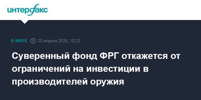 Москва. 20 апреля. INTERFAX.RU - Суверенный фонд благосостояния Германии (Kenfo) отказывается от ограничений на инвестиции в производителей вооружений в условиях усиления геополитической напряженности.