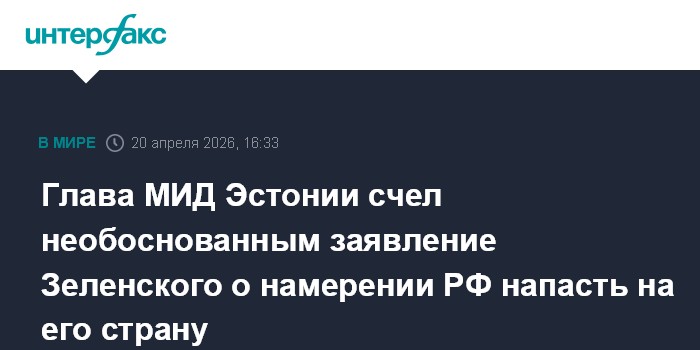 Москва. 20 апреля. INTERFAX.RU - Министр иностранных дел Эстонии Маргус Цахкна заявил, что не видит оснований для сделанных президентом Украины Владимиром Зеленским высказываний о намерении России напасть на Эстонию.