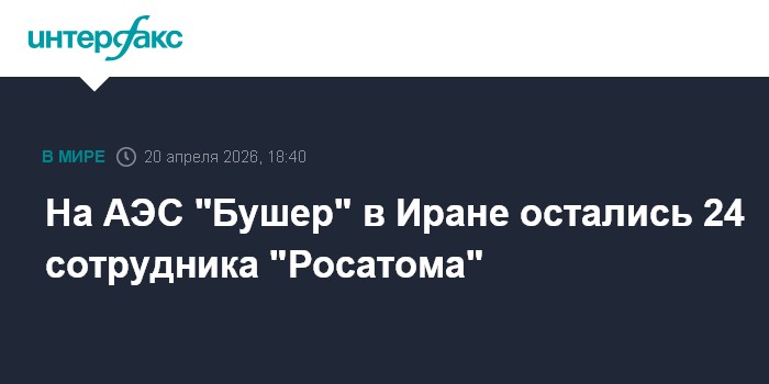 "Мы обоснованно закончили эвакуацию. Более 600 человек вывезли с начала военных действий, вывезли их в Россию. Остались на площадке только добровольцы: это 20 человек на площадке "Бушер" и четыре человека непосредственно в Тегеране. Их задача - поддерживать инфраструктуру, быть на связи с местным заказчиком, который все строительные активности прекратил", - сказал он.