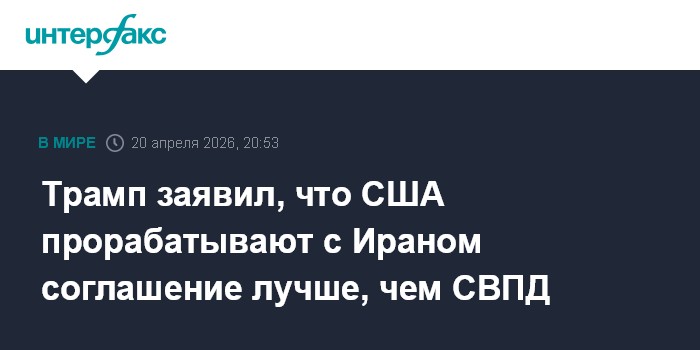 Москва. 20 апреля. INTERFAX.RU - Президент США Дональд Трамп в понедельник заявил, что Вашингтон и Тегеран ведут работу над соглашением более эффективным, чем Совместный всеобъемлющий план действий (СВПД) 2015 года, который, по версии Трампа, позволял Ирану создать ядерное оружие.