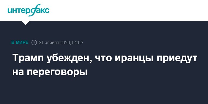 Москва. 21 апреля. INTERFAX.RU - Президент США Дональд Трамп в преддверии ожидающихся во вторник переговоров в Исламабаде выразил уверенность, что Иран примет в них участие, и надеется заключить сделку.