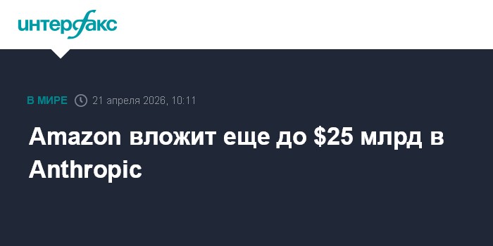 Москва. 21 апреля. INTERFAX.RU - Американская Amazon.com Inc. инвестирует еще до $25 млрд в ИИ-стартап Anthropic, разработчика ИИ-ассистента Claude, говорится в сообщениях компаний.