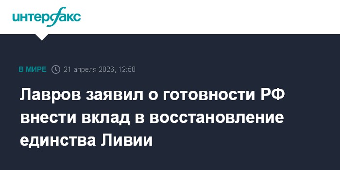 Москва. 21 апреля. INTERFAX.RU - Россия готова сделать вклад в усилия по восстановлению единства Ливии, заявил министр иностранных дел РФ Сергей Лавров.