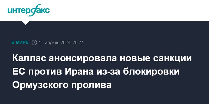 Каллас анонсировала новые санкции ЕС против Ирана из-за блокировки Ормузского пролива