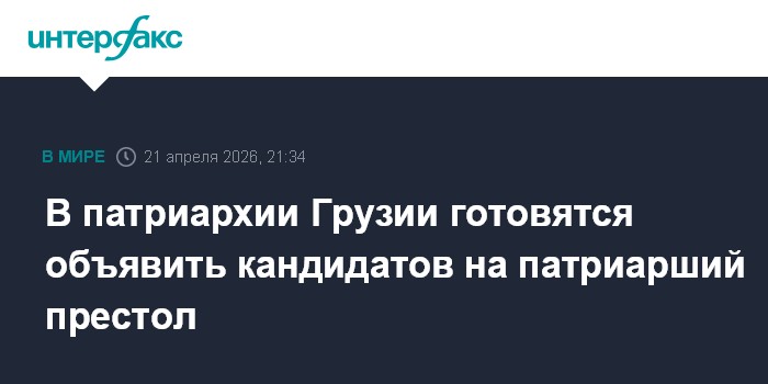 Москва. 21 апреля. INTERFAX.RU - Заседание Священного Синода в патриархии Грузии, на котором планируется объявление трех кандидатов на патриарший престол, состоится 28 апреля, сообщила патриархия.