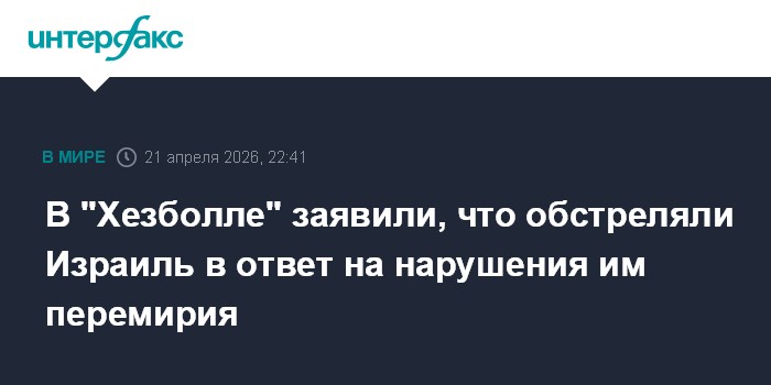 Москва. 21 апреля. INTERFAX.RU - В ливанском движении "Хезболла" во вторник заявили, что выпустили по Израилю реактивные снаряды и дроны в ответ на нарушения им перемирия, сообщает "Аль-Арабийя".
