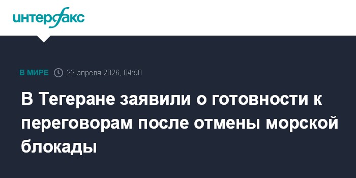 Москва. 22 апреля. INTERFAX.RU - Переговоры представителей Тегерана и Вашингтона в Исламабаде смогут состояться, когда американская блокада иранских портов будет снята, заявил постпред Ирана при ООН Амир Саид Иравани.