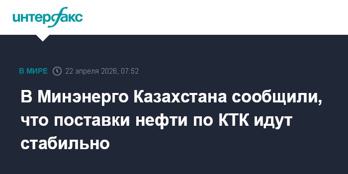 Москва. 22 апреля. INTERFAX.RU - Поставки казахстанской нефти в систему Каспийского трубопроводного консорциума (КТК) идут стабильно, сообщил министр энергетики Ерлан Аккенженов.