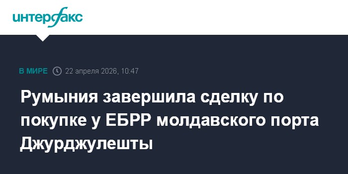 Москва. 22 апреля. INTERFAX.RU - Румынская национальная компания "Администрация морских портов Констанца" (Maritime Ports Administration SA Constanța, APM) завершила сделку по приобретению у Европейского банка реконструкции и развития дочерней компании ICS Danube Logistics, которая управляла международным портом Джурджулешты в Молдавии, сообщило румынское правительство.
