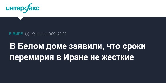 Москва. 22 апреля. INTERFAX.RU - Временные рамки для прекращения огня Иране будет устанавливать президент США Дональд Трамп, пока они не определены, заявила пресс-секретарь Белого дома Кэролайн Левитт.