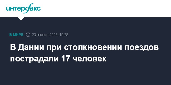 Москва. 23 апреля. INTERFAX.RU - Столкновение двух поездов близ столицы Дании привело к травмам у 17 человек, четверо из них в тяжелом состоянии, сообщает в четверг The Independent.