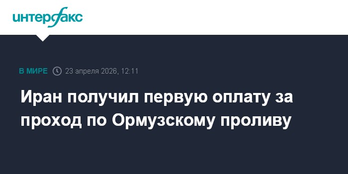 Москва. 23 апреля. INTERFAX.RU - На счет ЦБ Ирана поступила первая оплата после введения сборов за проход судов через Ормузский пролив, заявил в четверг вице-спикер парламента страны Хамид Реза Хаджи Бабаи.
