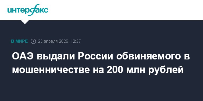 ОАЭ выдали России обвиняемого в мошенничестве на 200 млн рублей