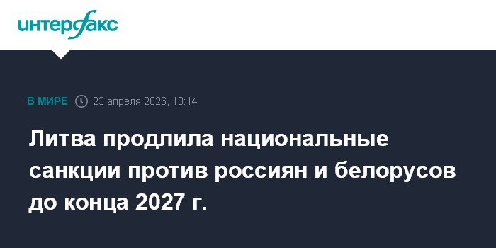 Москва. 23 апреля. INTERFAX.RU - Парламент Литвы принял решение о продлении санкций в отношении граждан России и Белоруссии, передает в четверг портал Литовского национального радио и телевидения LRT.