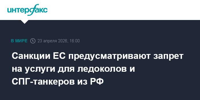 Москва. 23 апреля. INTERFAX.RU - ЕС в рамках очередного пакета санкций против РФ введет запрет на предоставление услуг для российских ледоколов и СПГ-танкеров, сообщили в четверг в МИД Эстонии.