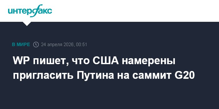 Москва. 24 апреля. INTERFAX.RU - Власти США планируют пригласить президента РФ Владимира Путина на саммит G20, который состоится в конце 2026 года во Флориде, сообщает The Washington Post со ссылкой на неназванных представителей американской администрации.