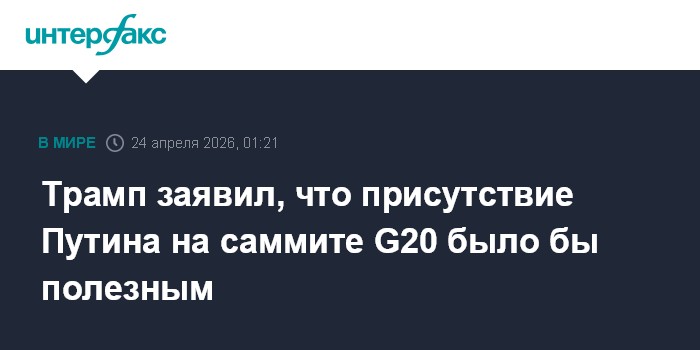 Москва. 24 апреля. INTERFAX.RU - Президент США Дональд Трамп сообщил, что пока не приглашал президента РФ Владимира Путина на декабрьский саммит G20 во Флориде, однако отметил, что его присутствие могло бы быть очень полезным.