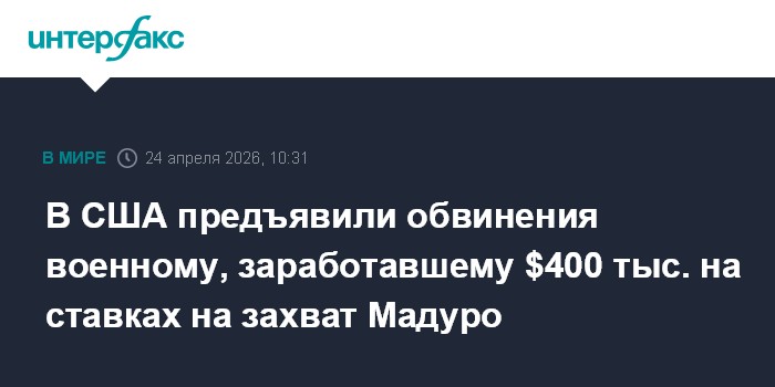 Москва. 24 апреля. INTERFAX.RU - Американскому военному предъявили обвинения в использовании секретной информации во время подготовки операции в январе против Николаса Мадуро, который на тот момент занимал пост президента Венесуэлы, сообщает Associated Press.