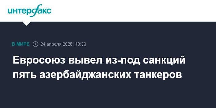 Москва. 24 апреля. INTERFAX.RU - Евросоюз вывел из-под санкционных ограничений пять танкеров, владельцем которых является Азербайджан, сообщило ЗАО "Азербайджанское каспийское морское пароходство" (ASCO).