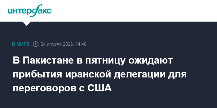 Москва. 24 апреля. INTERFAX.RU - Делегация во главе с министром иностранных дел Ирана Аббасом Аракчи, как ожидается, прибудет в пятницу вечером в Исламабад для возобновления переговоров с США, сообщает пакистанский телеканал Geo TV со ссылкой на источники.