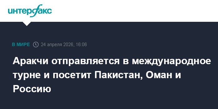 Москва. 24 апреля. INTERFAX.RU - Министр иностранных дел Ирана Аббас Аракчи в пятницу отправится в поездку, в ходе которой посетит Пакистан, Оман и Россию, сообщает агентство ИРНА.