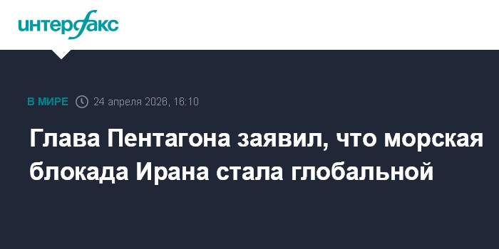 Москва. 24 апреля. INTERFAX.RU - Блокада иранских портов и судов, связанных с Ираном, приобрела "глобальный" характер и она будет оставаться в силе на весь период переговоров по соглашению с Тегераном, заявил на пресс-конференции глава Пентагона Пит Хегсет.