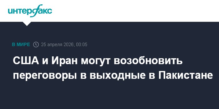 Москва. 25 апреля. INTERFAX.RU - США и Иран планируют вскоре продолжить переговоры в Пакистане, диалог может возобновиться в эти выходные.