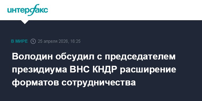 Володин обсудил с председателем президиума ВНС КНДР расширение форматов сотрудничества
