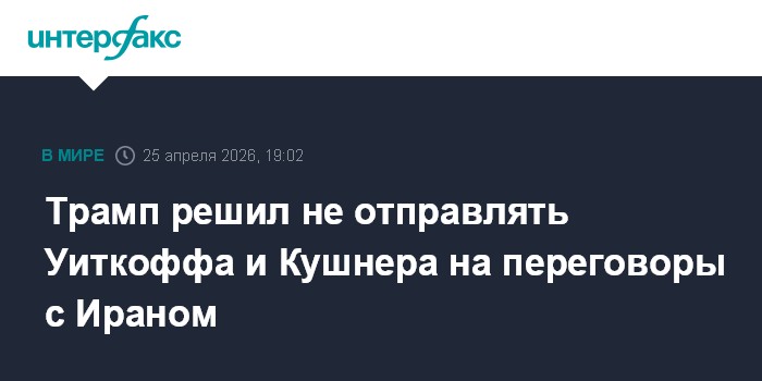 Москва. 25 апреля. INTERFAX.RU - Президент США Дональд Трамп заявил, что решил не давать разрешение своим переговорщикам Стиву Уиткоффу и Джареду Кушнеру на поездку в Пакистан для переговоров с Ираном.