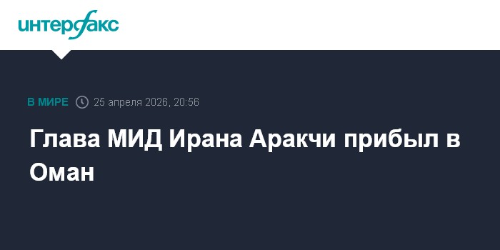 Москва. 25 апреля. INTERFAX.RU - Министр иностранных дел Ирана Аббас Аракчи прибыл в Маскат, сообщает агентство ИРНА.