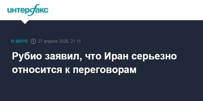 Москва. 27 апреля. INTERFAX.RU - Госсекретарь США Марко Рубио считает, что Иран серьезно настроен на завершение конфликта путем переговоров.