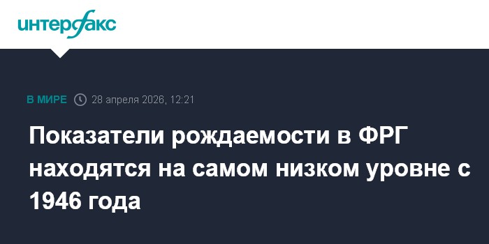 Москва. 28 апреля. INTERFAX.RU - В Германии показатели рождаемости снижаются четвертый год подряд и оказались сейчас на самом низком уровне с 1946 года, пишет Zeit со ссылкой на Destatis.