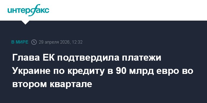 Совет ЕС принял 23 апреля решение о выделении Украине в 2026-2027 годах кредита для Украины в 90 млрд евро. Тогда совет пояснил, что это решение позволит Еврокомиссии начать выплаты во втором квартале 2026 года.