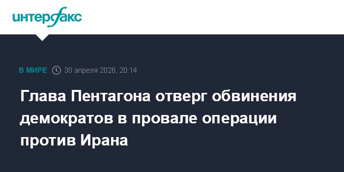 Москва. 30 апреля. INTERFAX.RU - Глава Пентагона Пит Хегсет на слушаниях в сенатском комитете по вооруженным силам отверг обвинения сенаторов-демократов в том, что война с Ираном была начата без доказательств непосредственной угрозы и велась без последовательной стратегии.
