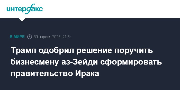 Москва. 30 апреля. INTERFAX.RU - Президент США Дональд Трамп приветствует решение поручить бизнесмену Али аз-Зейди формирование правительства Ирака, он написал об этом в Truth Social.