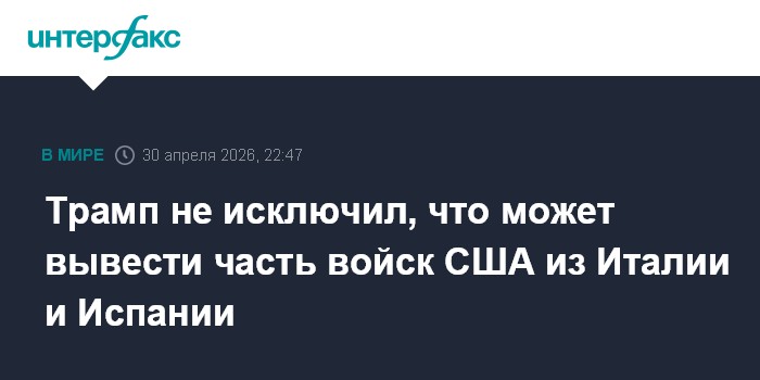 Москва. 30 апреля. INTERFAX.RU - Президент США Дональд Трамп заявил, что может рассмотреть идею о сокращении американского военного присутствия в Италии и Испании.