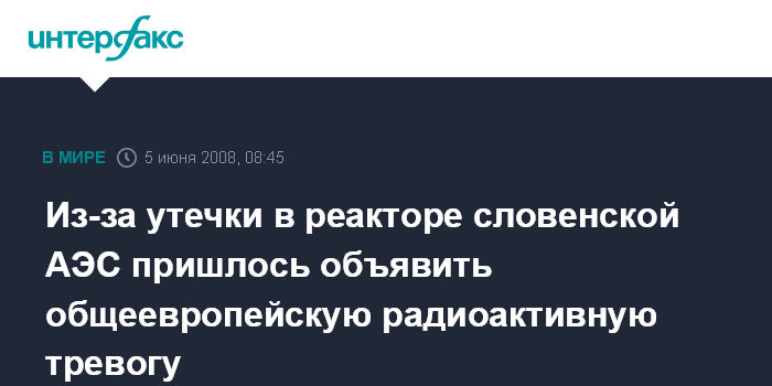 Решение о тревоге было принято после поступления сообщения из Словении об утечке в охлаждающем контуре реактора на АЭС "Кршко". Как сообщило поздно вечером в среду словенское телевидение, утечка в охлаждающем контуре реактора на АЭС "Кршко" не нанесла никакого вреда ни здоровью работников станции, ни жителям окрестностей, ни окружающей среде.