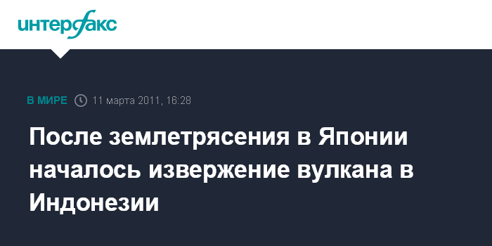 После землетрясения в Японии началось извержение вулкана в Индонезии