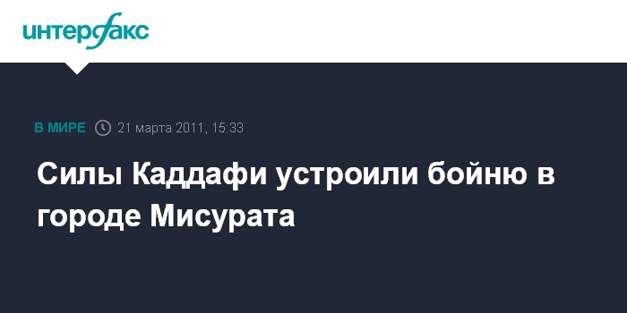 Рим. 21 марта. INTERFAX.RU - Верные Муамару Каддафи силы проводят кровопролитную операцию против сторонников оппозиции в ливийском городе Мисурата, сообщают в понедельник римские СМИ.