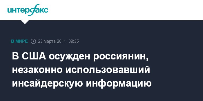 В США осужден россиянин, незаконно использовавший инсайдерскую информацию