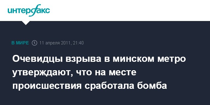 Минск. 11 апреля. INTERFAX.RU - В Минске среди зевак в районе места взрыва в метро происшествия начала распространяться информация о том, что на станции был не взрыв, а рухнула одна из колонн перекрытия. Однако очевидцы опровергают это.